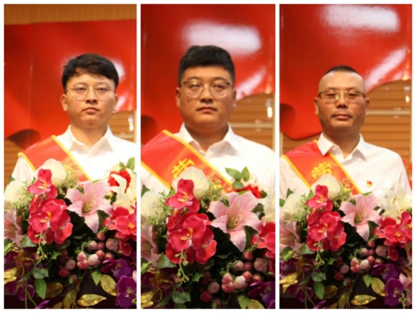 勞動模范:左:資源循環公司 席文童;中:廣拓能源公司 麻玉龍;右:炔烴節能公司 金學鋒