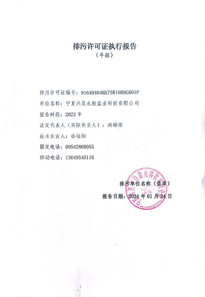寧夏興昊永勝鹽業科技有限公司2023年度排污許可執行報告